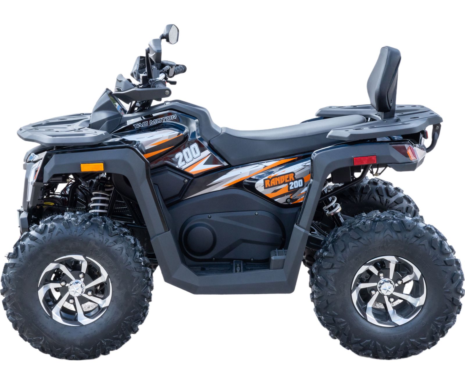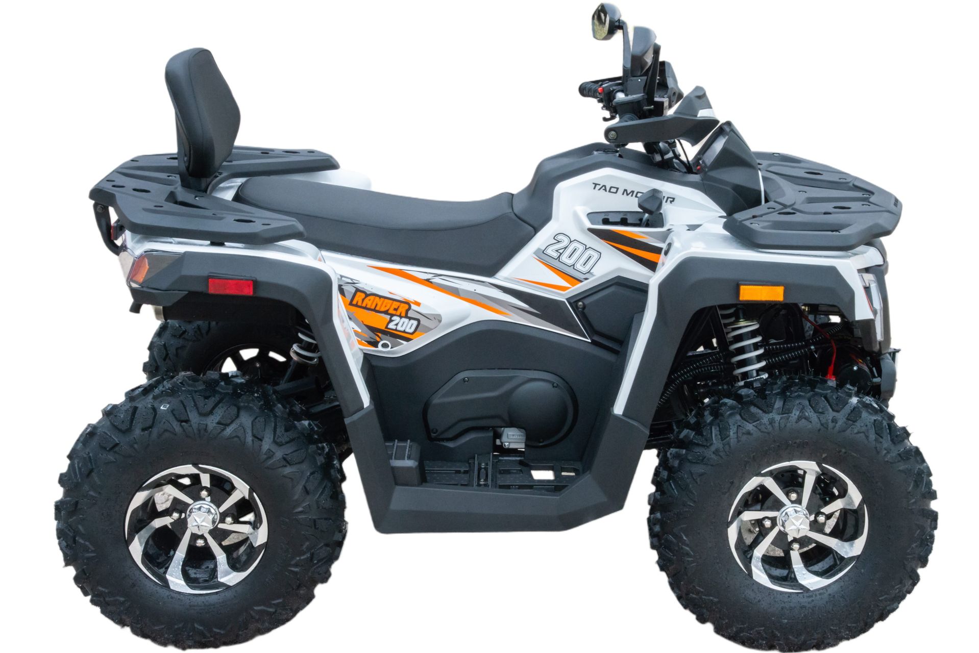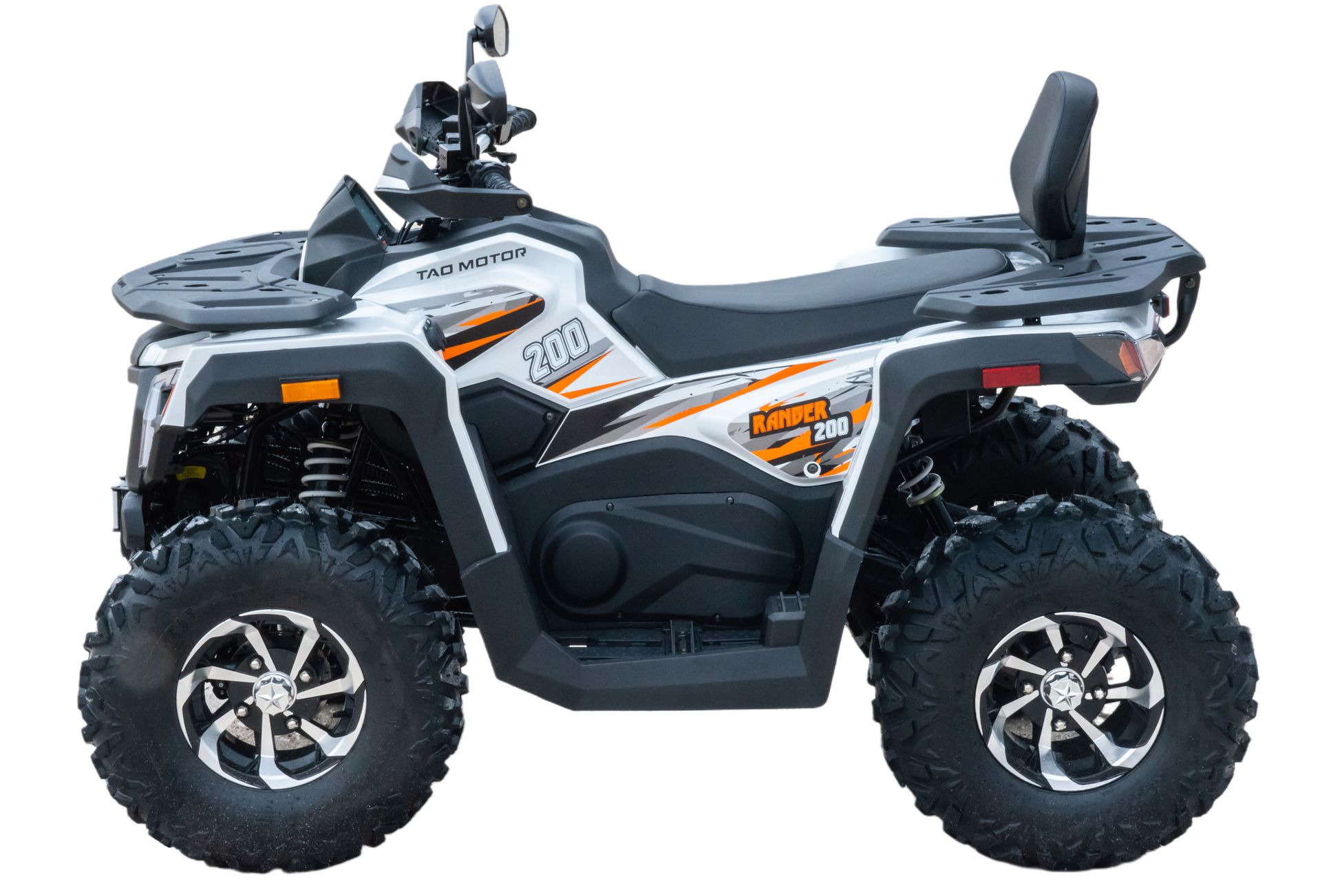 Данная модель оснащена ВЕРТИКАЛЬНЫМ двигателем,  автоматической коробкой передач, увеличенными воздухозаборниками, электростартером. Предназначен для езды по бездорожью, имеет хорошую проходимость, прекрасно ведёт себя на песке, грунте и в грязи. Это одна из лучших моделей ATV по соотношению цены и качества. Подходит для новичков и любителей. Новые сбалансированные амортизаторы позволяют легко преодолевать ямы, ухабы и другие неровности. Задняя подвеска с новым, усиленным моно-амортизатором. Квадроцикл доступен в белом цвете с модернизированной линзовонной светодиодной оптикой, увеличенными ходовыми огнями и поворотниками отлично выглядит в своем новом агрессивном стиле. Дополнительная спинка пассажира, а так же USB разъем и прикуриватель.  ATV RANGER 200 весит 160 кг, выдерживает нагрузку до 150 кг. Рама стальная, трубчатая, покрашена в цвет. Прочный облицовочный пластик не ломается при сгибании. Квадроцикл имеет оригинальные литые колесные диски, передние - 23х7 R10 и задние - 22х10 R10. Габариты в собранном виде (ДхШхВ): 1800х1000х1280.